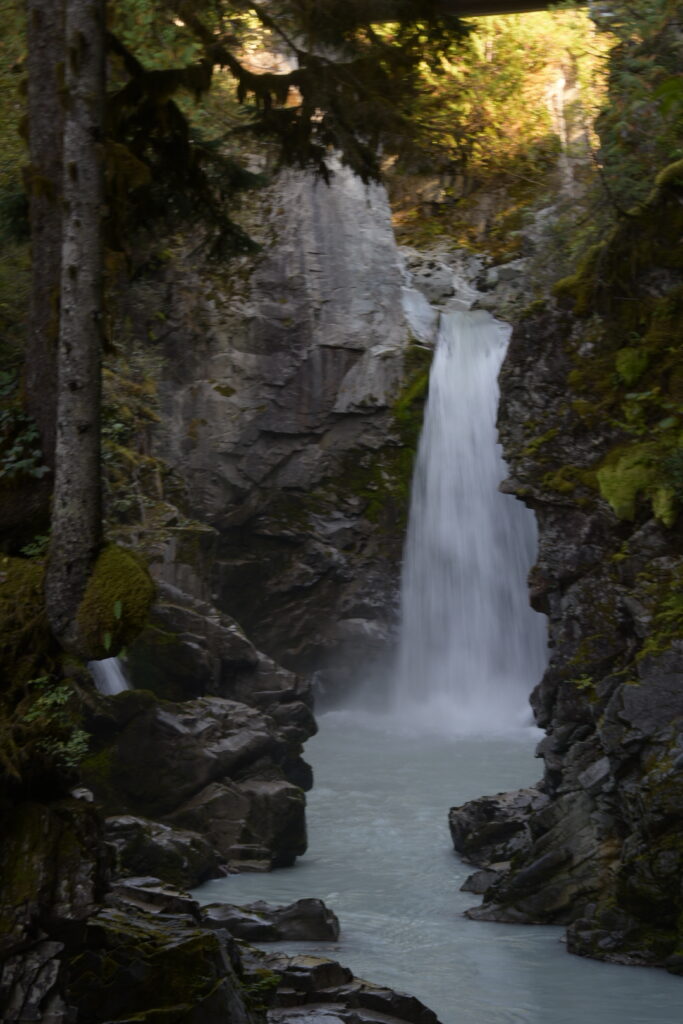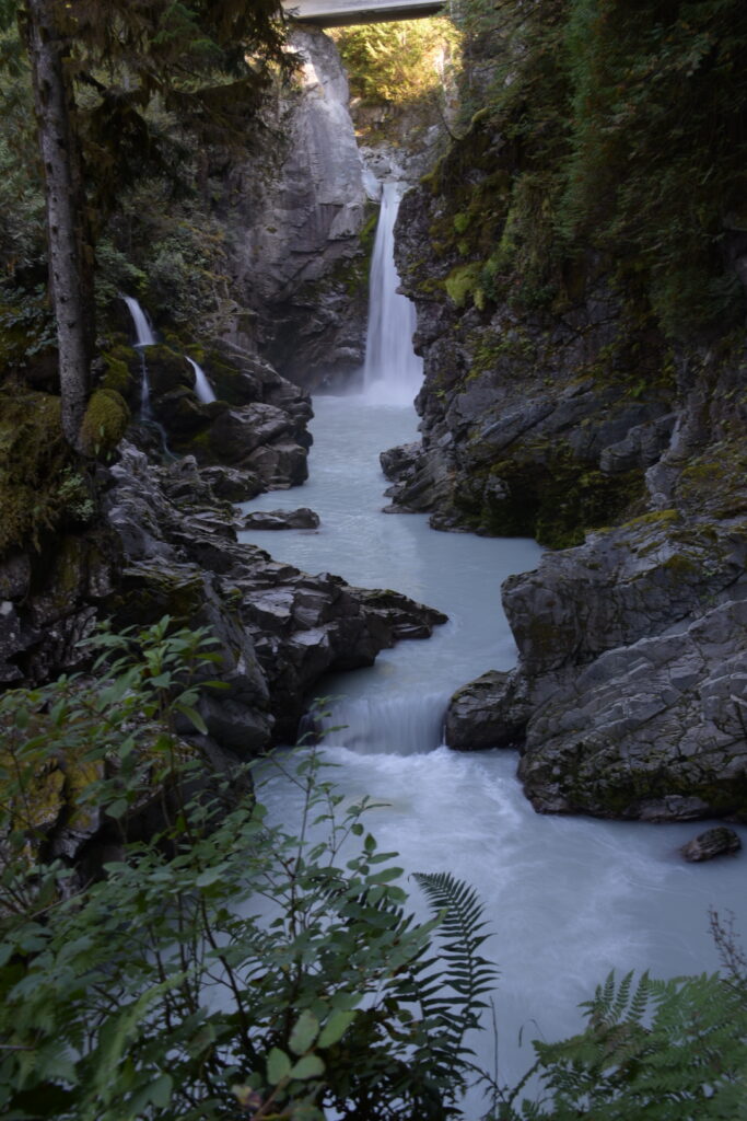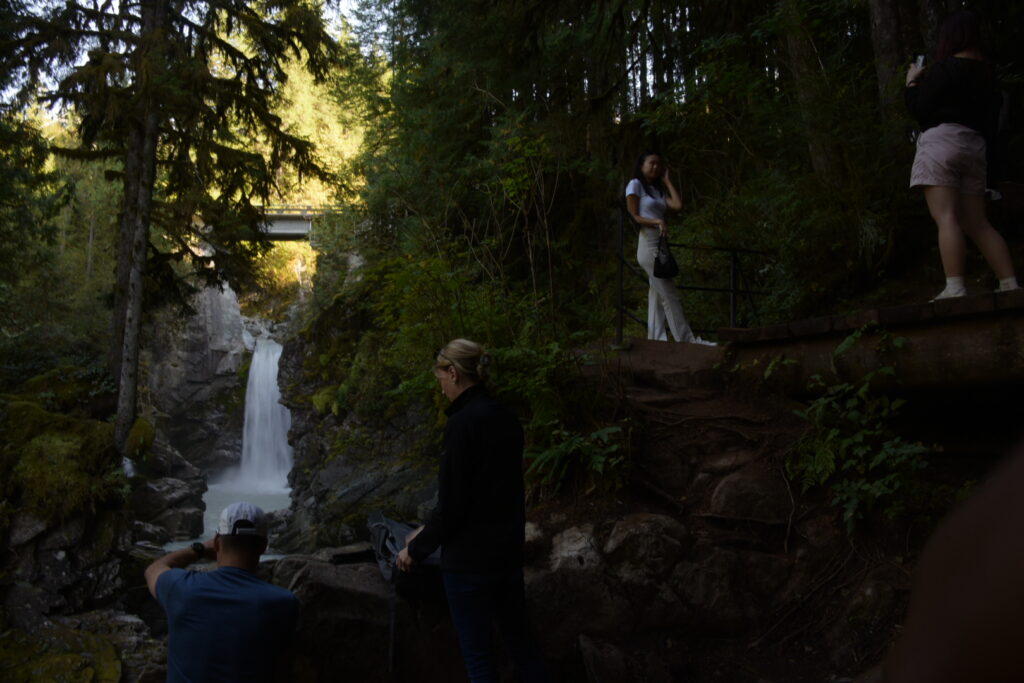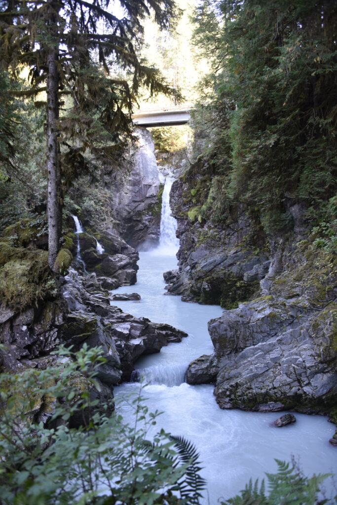 Puis on va à Mamquam falls. Une fois là bas, il y a un sentier aménagé avec des passerelles en bois, c’est 44$ / personne pour faire le sentier aménagé… Ô Canada. J’avais vu sur l’appli all trails qu’il y avait un chemin pour voir la cascade gratos, on fait ça. On en prend plein les yeux.