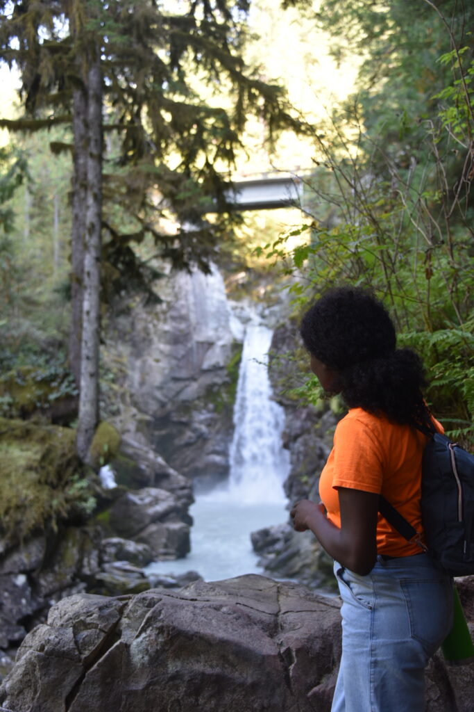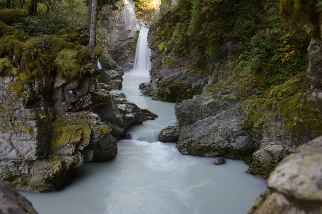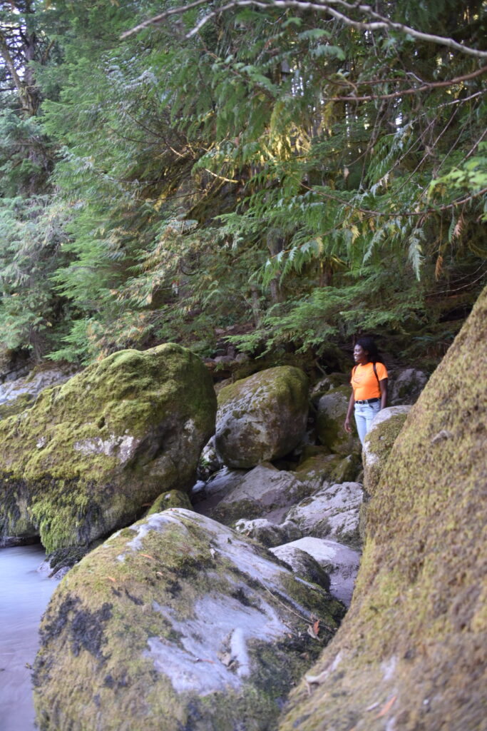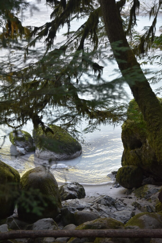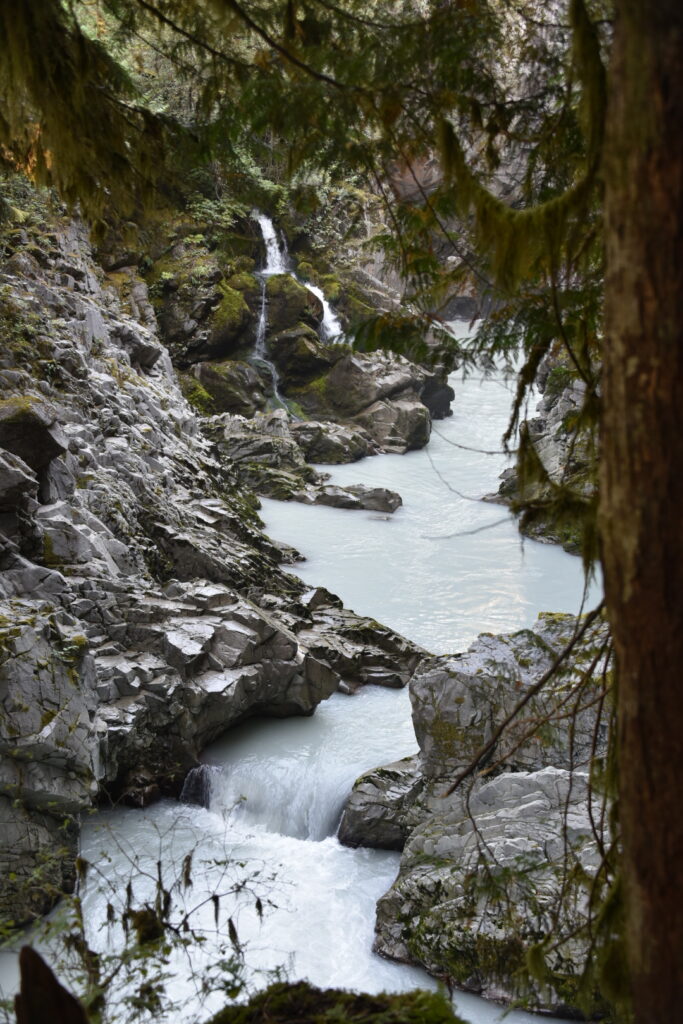 Puis on va à Mamquam falls. Une fois là bas, il y a un sentier aménagé avec des passerelles en bois, c’est 44$ / personne pour faire le sentier aménagé… Ô Canada. J’avais vu sur l’appli all trails qu’il y avait un chemin pour voir la cascade gratos, on fait ça. On en prend plein les yeux.